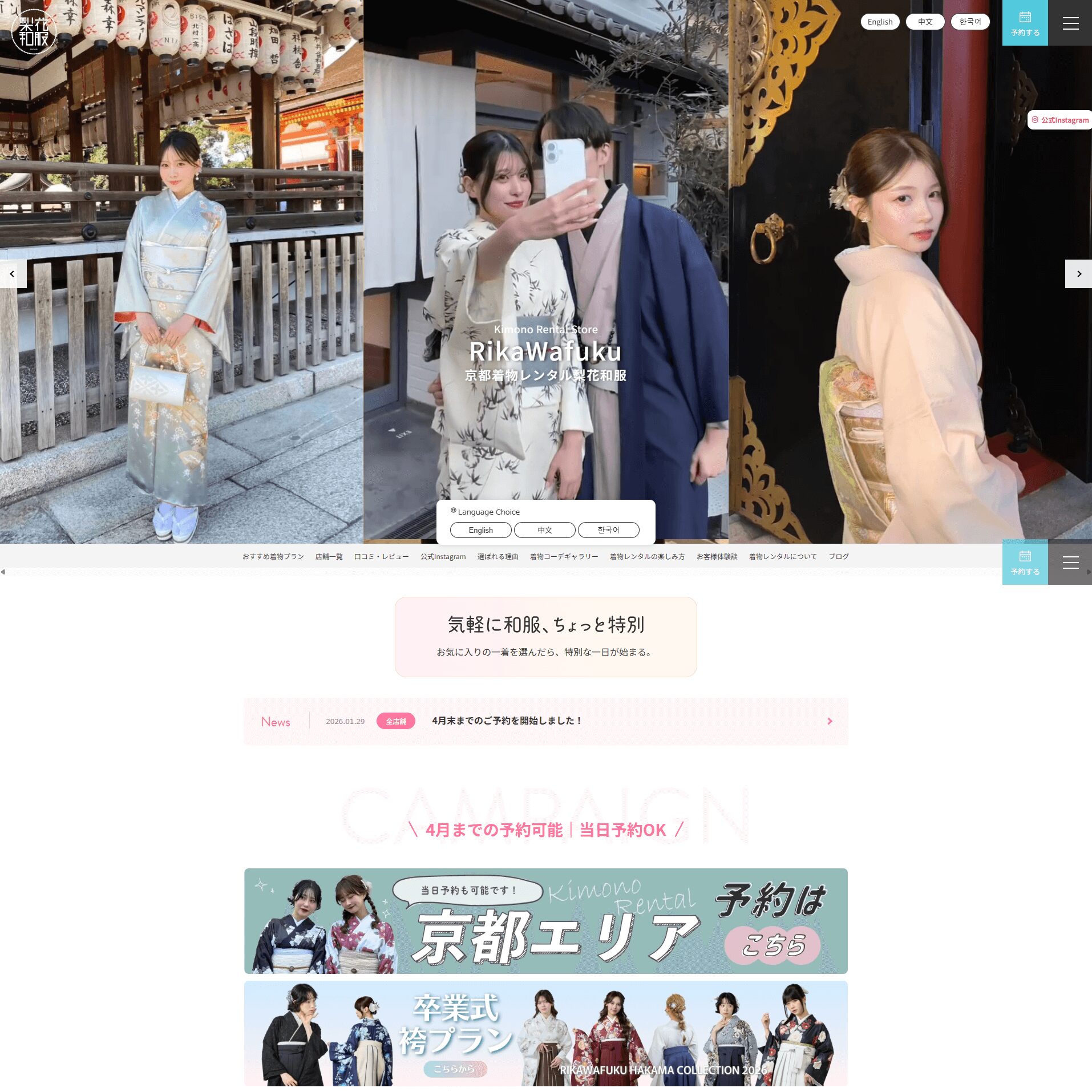 まずは、利用する着物レンタル店のホームページにアクセスしてWEB予約の手続き、または電話で予約を入れましょう。このときに、希望のプランや日時を決めていきます。